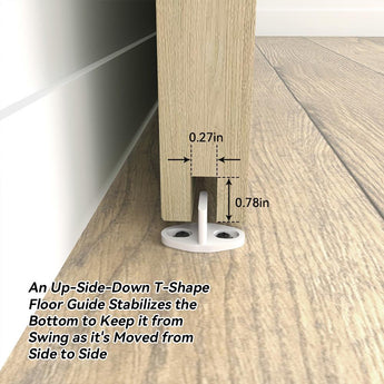 A T-shape floor guide has been included in the kit, designed for doors with slots at the bottom and it needs to be mounted onto the ground.
