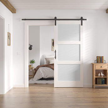 3 Glass White Barn Door